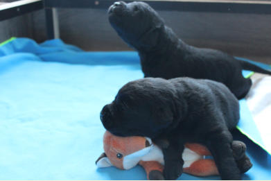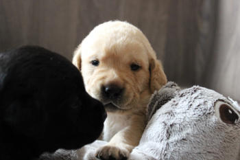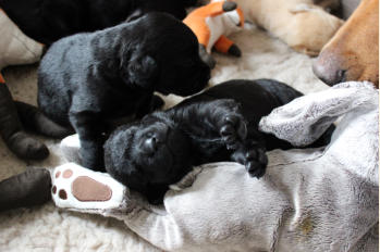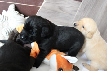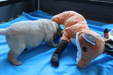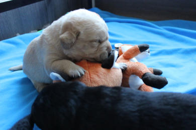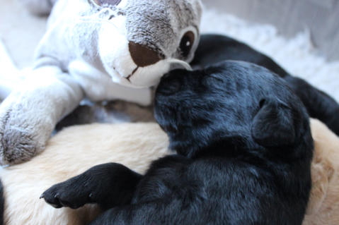 Die Welpen machen enorme Entwicklungsfortschritte. Augen und Ohren haben sich geöffnet und die ersten Gehversuche werden gemacht. Kuscheltiere werden wahrgenommen und tatkräftig beschnuppert und Streicheleinheiten voll genossen :-) Ihr Geburtsgewicht haben sie verdreifacht und heute wurden zum ersten Mal die Krallen gekürzt! ..... war gar nicht schlimm ;-)