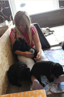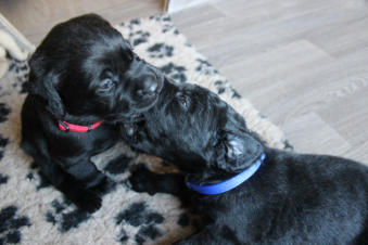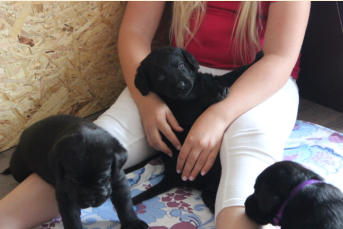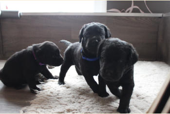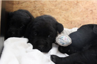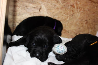 Die Rasselbande wird langsam munter! Die Wurfkiste alleine reicht ihnen nicht mehr aus. Neugierig erorbern sie ihre Welt außerhalb der Wurfkiste und die ersten Raufereien der tollpatschigen Zwerge ist einfach herrlich anzusehen ;-) Mittlerweile gibt es auch für die kleinen Nimmersatt leckere Ziegenmilch aus dem Napf!